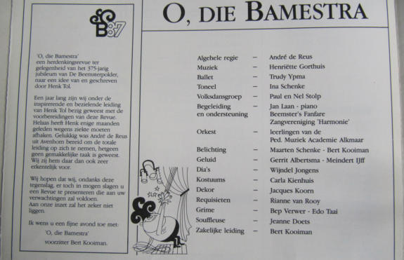 O, Die Bamestra, Revue 375 jaar Beemster, gespeeld in 1987, Locatie: De Kloek Middenbeemster.